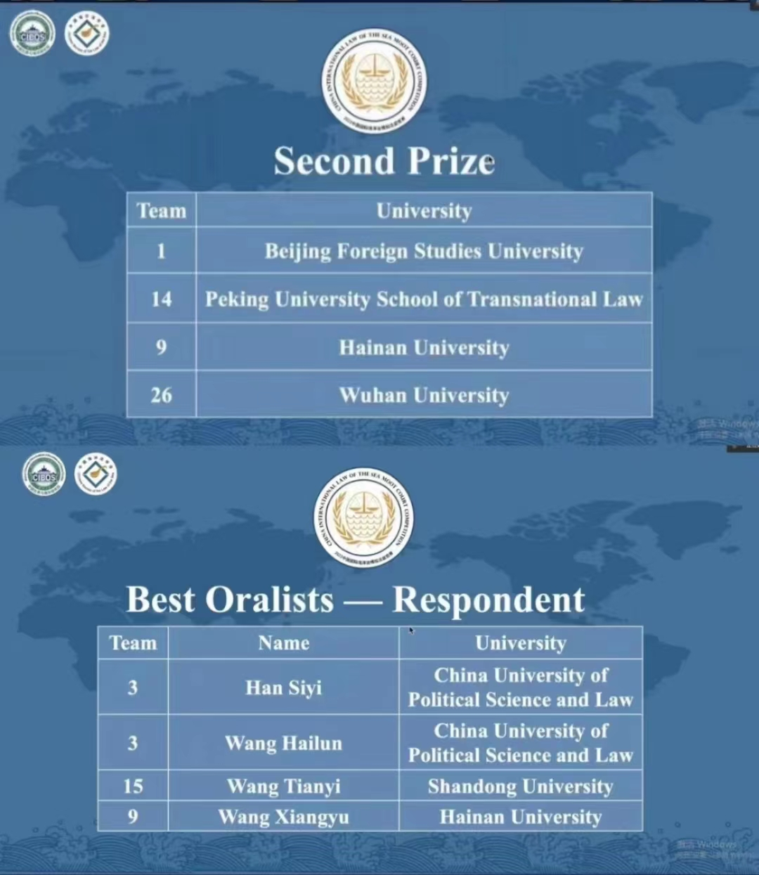 11月13日,由武汉大学中国边界与海洋研究院联合中国海洋法学会共同举办的2022年中国国际海洋法模拟法庭竞赛(2022 China International Law of the Sea Moot Court Competition)落下帷幕,我院代表队荣获团体二等奖(Second Prize)、2020级涉外法治人才班王翔宇同学荣获辩方最佳庭辩人(Best Oralists -- Respondent)。