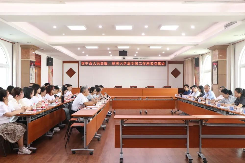 为加强理论学习与实践调研相结合,提升国家一流本科课程教学质量和学生实践能力,2023年5月17日,402永利集团官网入口“诊所法律教育”课程师生代表一行30余人在课程负责人叶英萍教授的带领下,前往琼中黎族苗族自治县人民法院和司法局开展实践教学调研活动。