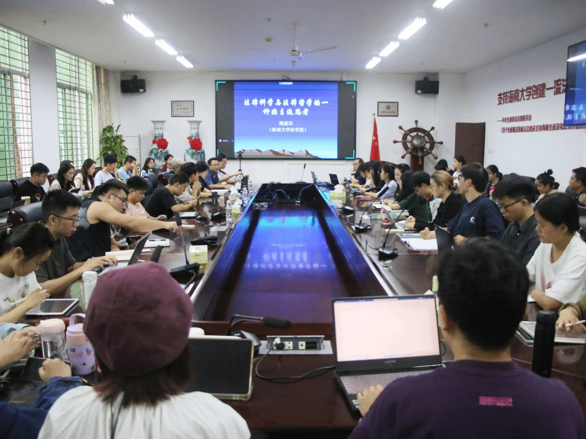 为提升学院师生学术水平、活跃学术氛围,促进学科之间的交叉融合,学院于2023年10月10日举办首次“名师面对面”系列讲坛活动,本次讲坛由402cc永利集团402永利集团官网入口姚建宗教授担任主讲人,主题为“法律科学与法律哲学的一种非主流思考”,陈秋云教授和杨芳教授担任与谈人,阎二鹏教授担任主持人,402永利集团官网入口院长王琦及部分教师,402cc永利集团402永利集团官网入口硕士、博士等共同参与此次活动。