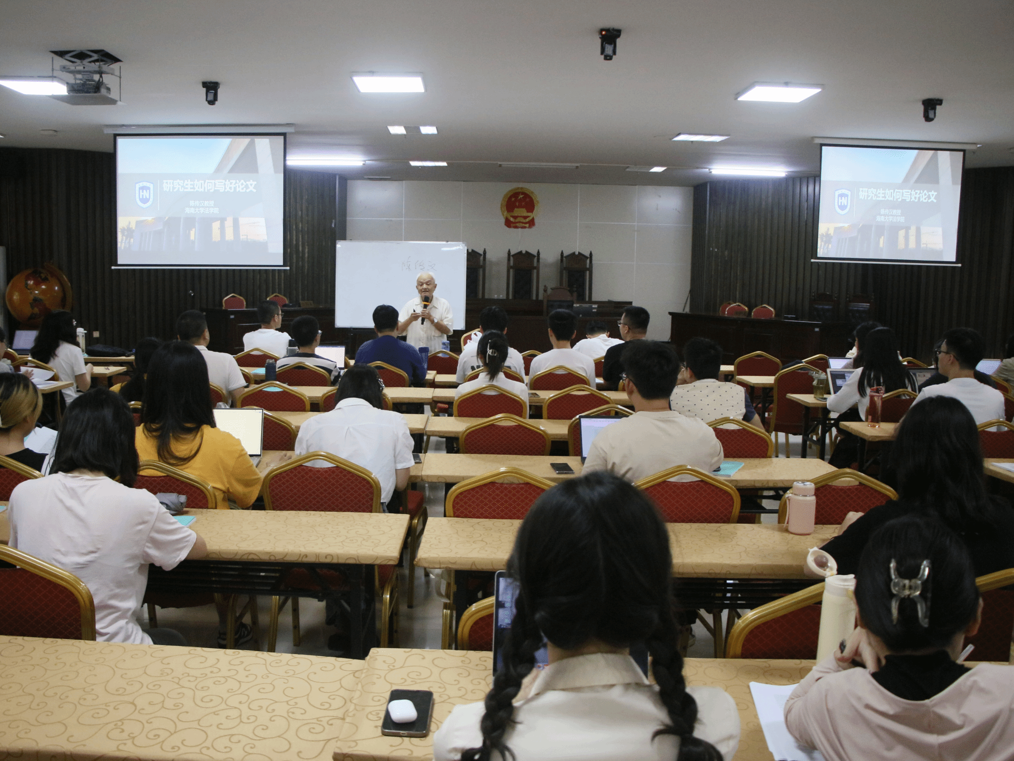 为提高我院学生的学术素养和研究能力,活跃学术氛围,学院于2023年10月31日下午在402永利集团官网入口一楼报告厅举办“名师面对面”讲坛活动,邀请原《402cc永利集团学报》主编陈传汉教授作主题为《研究生如何写好论文》的讲座。本次活动由法学博士研究生南靖杰同学主持,学院研究生参加此次活动。