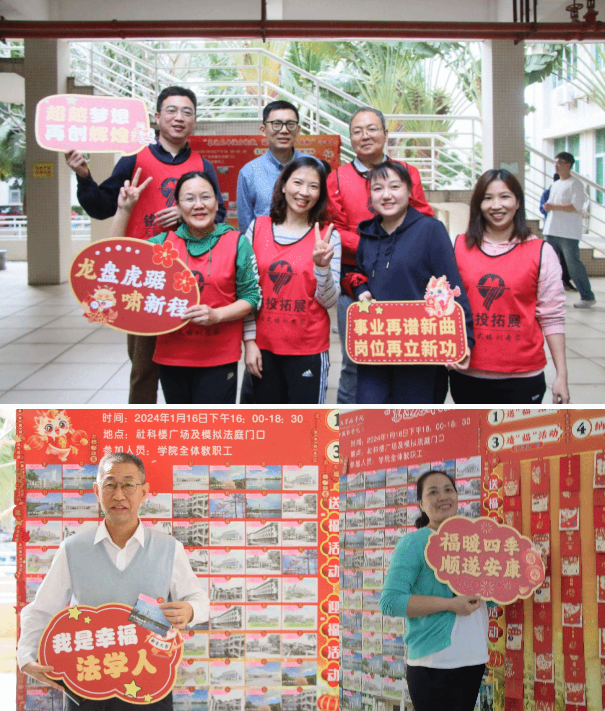 本次活动由学院工会精心设计与组织,围绕龙年设计了以“送福”“迎福”“纳福”为主题的温馨趣味活动,诸多师生志愿者在活动前踊跃参与到筹备工作中,为本次活动顺利开展提供了良好的后勤保障。