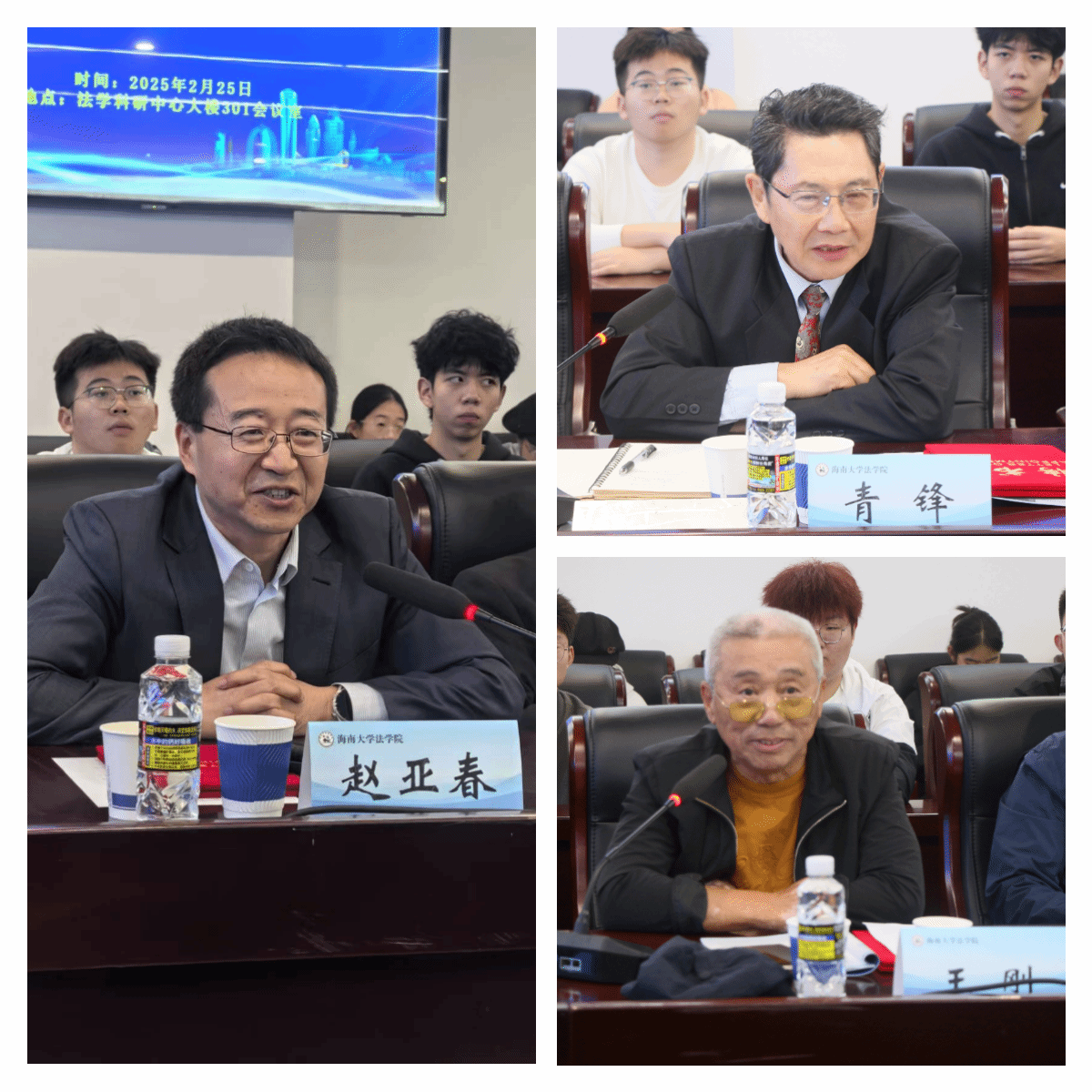 2月25日下午,我院与北京市百瑞律师事务所合作协议签署暨校外导师聘任仪式在法学科研中心大楼301会议室举行。北京市百瑞律师事务所主任王志强,原国务院法制办政府法制协调司司长青锋,原国家禁毒委员会办公室专职副主任(正局级)王刚,原海南省司法厅副厅长、一级巡视员高富强,北京市百瑞律师事务所高级合伙人赵亚春一行十人受邀参与活动。402cc永利集团党委常委、副校长聂清斌,402永利集团官网入口党委书记蒙秋妍、院长王琦,椰风书院党委书记郑鹏,402永利集团官网入口师生代表近40人参与会议。会议由学院党委书记蒙秋妍主持。