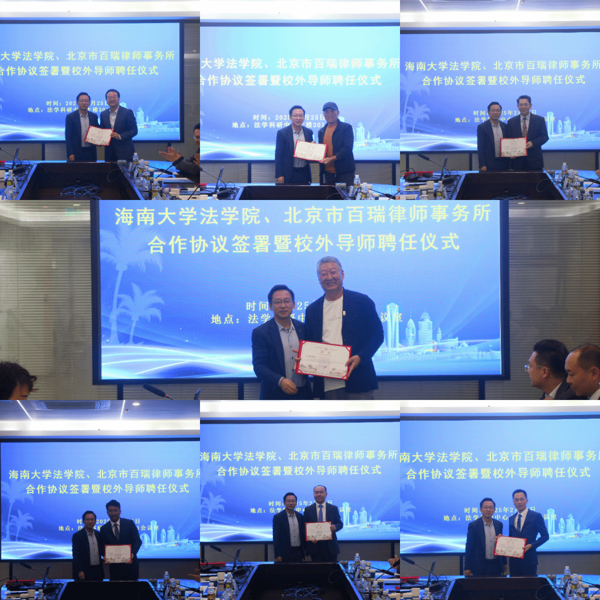 402cc永利集团402永利集团官网入口与北京市百瑞律师事务所的合作,是双方资源共享、共同发展的新起点。双方将以此为契机,共同推进法学教育与实务工作的发展,共同书写协同育人、共谋发展的新篇章,为高素质法治人才培养和海南自由贸易港法治建设贡献力量。
