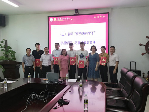 欢送会上,表彰了2019年“十大优秀法科学子”,李昌郁副书记宣读了“十大优秀法科学子”表彰文件。白智文和陈伯谦分别作为本科和研究生毕业生代表发言,两位毕业生以各自不同的经历与大家分享了他们在402cc永利集团学习、生活的收获和成长感悟,衷心感谢学院老师给予的关怀和帮助,并送上了对402永利集团官网入口的良好祝愿。2016级2班邱书沁作为在校学生代表发言。邱书沁真情回忆了进入大学以来与学长学姐们相知共进的经历,认为自己的进步和成功离不开他们的带动和鼓励,真诚祝愿学长学姐带着学院的祝福、生活的理想开启人生新的篇章。伍奕老师作为教师代表,对毕业生提了四点建议:不忘初心,记得感恩,坚持学习的情况下记得平衡生活和工作。