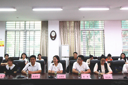 宣讲团成员副领队王新营(北京印刷学院学工部副部长)、吴薇(华北电力大学经济与管理学院团委书记)、靳周(华北电力大学核科学与工程学院团委书记)、李文姝(华北电力大学经济与管理学院辅导员、王俏元(北京印刷学院经济管理学院硕士研究生、肖博恒(北京印刷学院设计艺术学院硕士研究生)、张坤(北京印刷学院新媒体学院本科生)一行在402cc永利集团学生工作处副处长范启标陪同下,考察了我院党建工作、团学工作并开展了交流。我院党委副书记李昌郁、团委负责人王杜娟、辅导员张国超、学生骨干、入党发展对象60余人参加了此次活动。