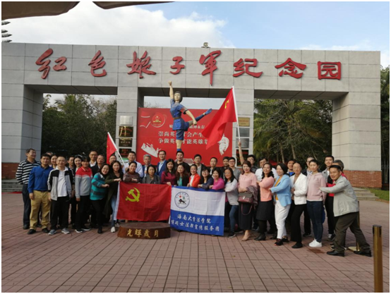 1月3日下午,402永利集团官网入口教职工到达琼海市,参观全国爱国主义教育示范基地:红色娘子军纪念园。缅怀先烈,传承红色基因,牢记红军在中国共产党领导下艰苦卓绝的光辉历程,这是402永利集团官网入口开展的党建教育活动之一。教师们在红色娘子军纪念园分别参观了和平广场、纪念广场、红色娘子军纪念馆和椰林寨等地。最后,教职工们在红色娘子军雕像下,进行了合影留念。