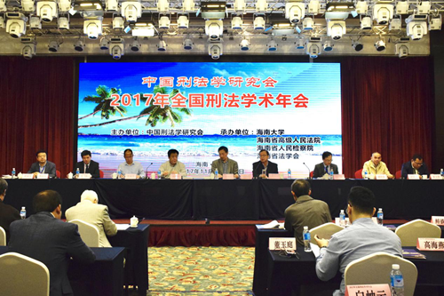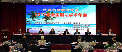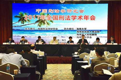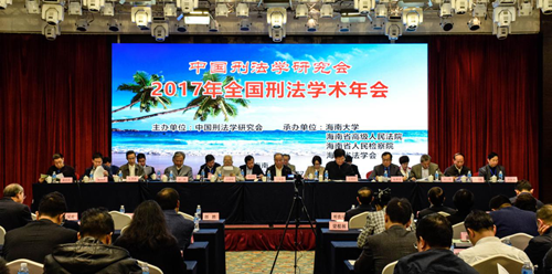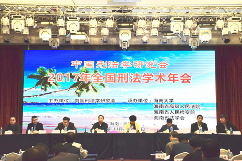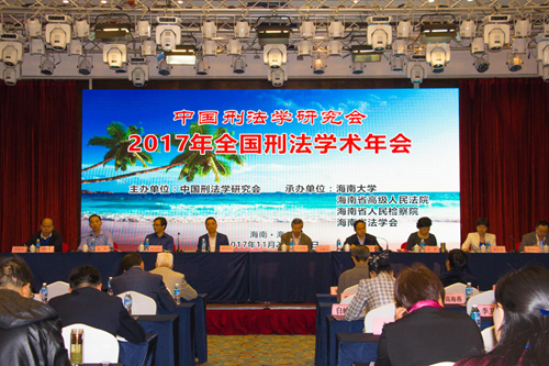 2017年11月26日至27日,2017年全国刑法学术年会在海口市新燕泰大酒店召开。本届年会由中国刑法学研究会主办,402cc永利集团、海南省高级人民法院、海南省人民检察院、海南省法学会承办。本次年会主题为“时代变迁与刑法现代化”,并以“刑法典颁行20周年来刑法立法的回顾与展望”为理论议题,以“金融秩序与安全的刑法保护”“公民个人信息的刑法保护”和“中国区际刑法20年实践的检讨与发展”为实务议题。