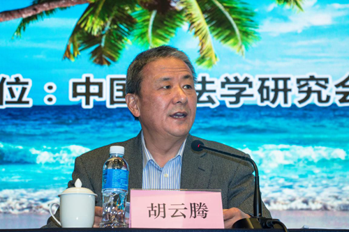 随后,最高人民法院审委会专职委员胡云腾大法官作了题为“新时代的刑事司法”的主题报告。首先,他介绍了近年来刑事司法的变化,如刑事案件数量逐年增长,部分严重暴力犯罪下降,贪污受贿渎职犯罪案件从十八大以来空前增多等情况。其次,他介绍了2013年以来“两高”或者最高法出台的司法解释以及规范化文件,其价值取向主要体现在安全、公正、公民权利保障、改革、纠错、反腐、禁毒、环境保护等方面。最后,他强调在大数据时代、人工智能时代,应从技术规则与理论价值研究的并重,刑法学与犯罪学等延伸研究的并重,大数据研究、案例研究和学术资料研究相结合,被告人与被害人的权利保障研究并重等方面展开学术研究。主持人郎胜副会长认为,胡云腾专委给我们提供的系列数据,能够使我们更加深入的思考并更好的从犯罪发展趋势研究我们当下的刑法学问题。刑法学的理论研究离不开国家经济社会发展的大背景,因此刑法研究要和国家的整个经济社会发展紧密结合在一起。