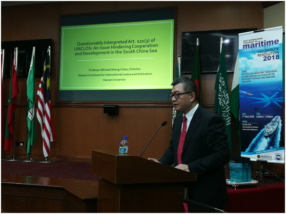 2018年5月7日,402cc永利集团402永利集团官网入口与马来西亚国际伊斯兰大学402永利集团官网入口在马来西亚首都吉隆坡联合举办了题为“Maritime Territorial Claims and Dispute Resolution”国际研讨会。会上,马来西亚国际伊斯兰大学402永利集团官网入口院长Ashgar Ali教授和402cc永利集团402永利集团官网入口院长王琦教授分别致辞,马来西亚前外交部长Syed Hamid博士作了主旨发言。402cc永利集团402永利集团官网入口高圣惕教授和马来西亚国际伊斯兰大学402永利集团官网入口Abdul教授分别作了“Questionable Interpretation of Article 121 of UNCLOS: An Issue Hindering Cooperation and Development in the South China Sea”和“Islands Versus Rocks: Claims over Maritime Entitlements and Interpretation of Article 121 of the UNCLOS”主题发言。马来西亚马拉工业大学402永利集团官网入口Rahmat教授、马来西亚大学中国研究所的Ngeow博士、马来西亚国际伊斯兰大学402永利集团官网入口Muhammad教授、Muhamad博士、Yazid博士、以及402cc永利集团402永利集团官网入口邹立刚教授和张丽娜教授等围绕海洋领土主权、司法与仲裁、南海合作等问题进行了热烈讨论。马来西亚国际伊斯兰大学的学生、马来西亚部分律师事务所律师等60余人参加了此次研讨会。