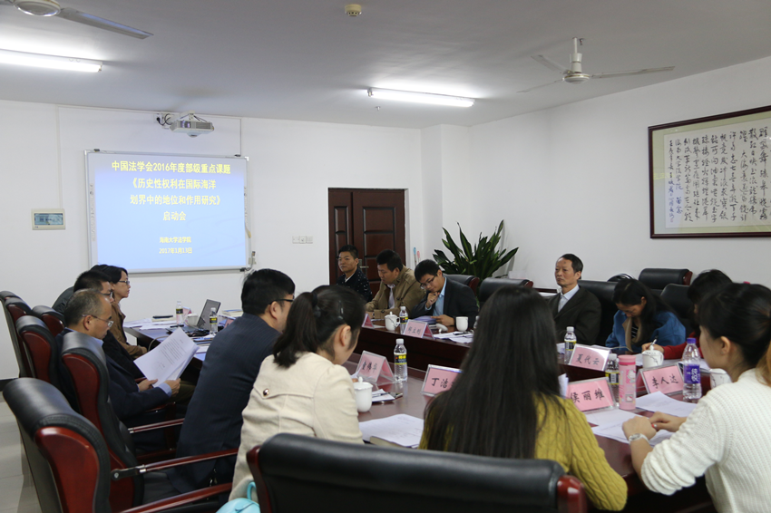 2017年1月13日上午,中国法学会2016年度部级法学研究重点课题《历史性权利在国际海洋划界中的地位和作用研究》启动会在402cc永利集团402永利集团官网入口717会议室顺利召开。
