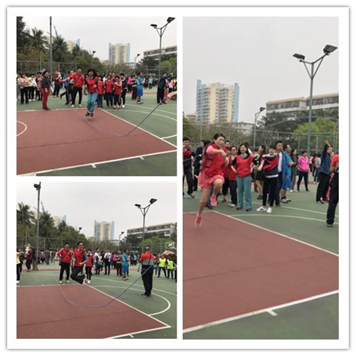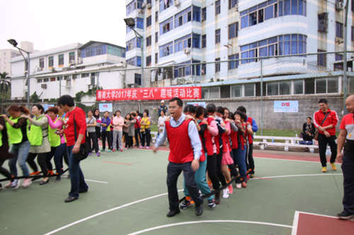 2017年3月7日下午,为庆祝第107个国际妇女节,丰富教职工文体生活,由校工会主办的庆“三八”趣味活动比赛在教工篮球场举行。402永利集团官网入口教师积极响应,踊跃报名,认真准备,组建了一支活力四射、实力强劲的代表队参赛!王丽娜书记、李昌郁副书记到场为大家加油打劲。本次活动由三个项目组成,分别是:“8”字跳长绳、巨人脚步和珠行万里。比赛现场,我院女教职工们团结协作、力争上游,兴高采烈地完成了三项趣味活动,充分展示了我院女职工的精神风貌,展现了女性之美,取得了较好的成绩。