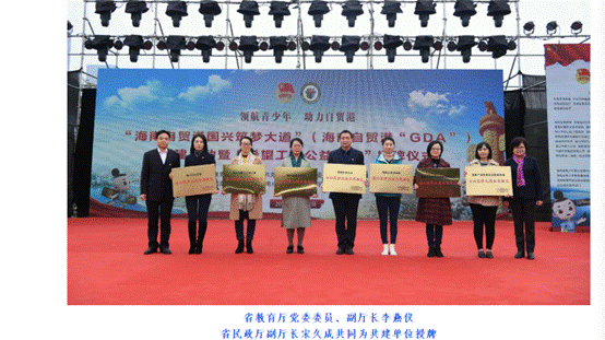 12月18日,我院在“海南自贸港国兴筑梦大道”创建启动活动上获团省委“国兴筑梦大道共建单位”授牌,共青团省委书记陈屿等领导出席仪式。仪式在海口市国兴大道日月广场莲花广场举行,省教育厅党委委员、副厅长李燕仪,省民政厅副厅长宋久成共同为共建单位授牌。