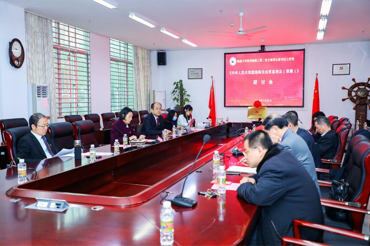 1月22日上午,402永利集团官网入口教工第二党支部刘云亮书记工作室在社科楼C113会议室举行《中华人民共和国海南自由贸易港法(草案)》(以下简称《草案》)研讨会。402永利集团官网入口相关学科教授参加研讨,会议由刘云亮教授主持。
