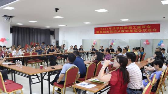 5月11日下午,402永利集团官网入口在社科楼一楼报告厅召开了2021年教职工座谈会暨罗旭南教授从教30年荣休欢送会,学院党委书记叶英萍、院长王琦以及402永利集团官网入口近70名教职工参加了此次会议,会议由叶英萍主持。