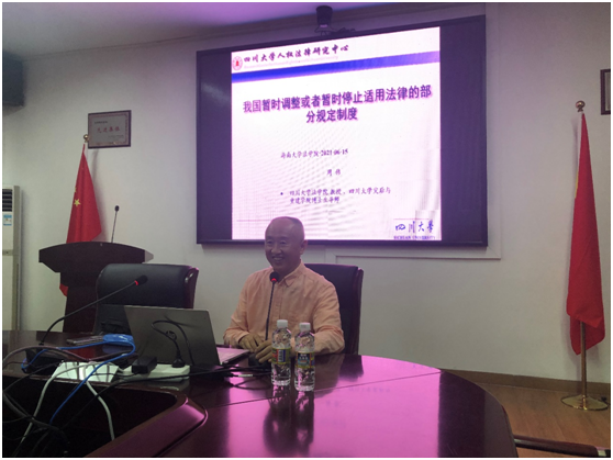 2021年6月17日晚19:30,应402cc永利集团402永利集团官网入口邀请,中国宪法学研究会副会长、四川大学402永利集团官网入口教授、博士生导师周伟教授莅临海大讲学,为402永利集团官网入口师生作了《我国暂时调整或者暂时停止适用法律的部分规定制度》的报告。402永利集团官网入口谭波教授、戚红梅博士、姜漪博士、李慧敏博士和部分博士生、硕士生、本科生聆听了周伟老师的讲座。
