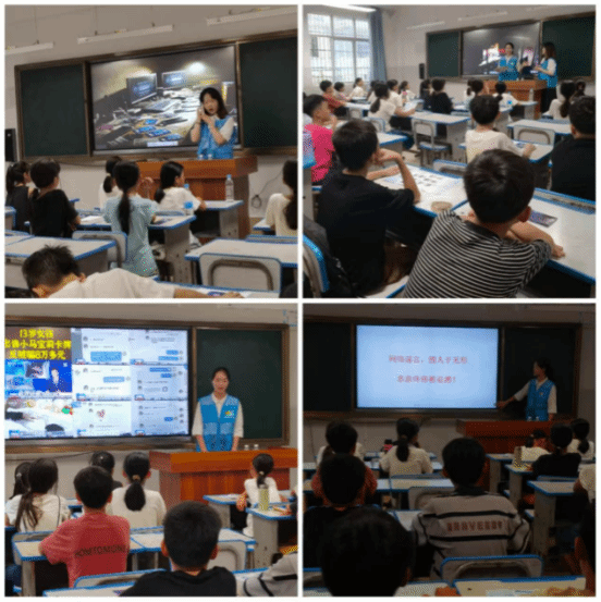 在宝西村驻村第一书记陈鹏的带领下,青云书院师生实践团队走进宝上小学,与120余名小学生开展“筑牢网络安全防线 担当青年时代使命”普法宣传教育。团队成员用通俗易懂的语言、生动案例讲解网络安全知识,通过课堂互动、发放宣传折页等形式,引导学生“防范网络诈骗”“珍惜时间文明上网”。