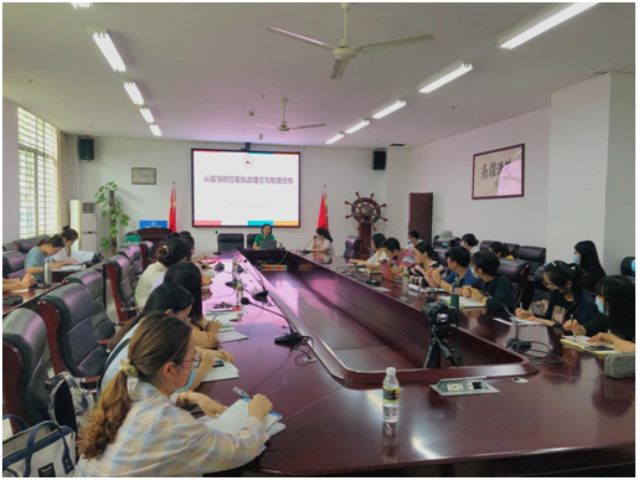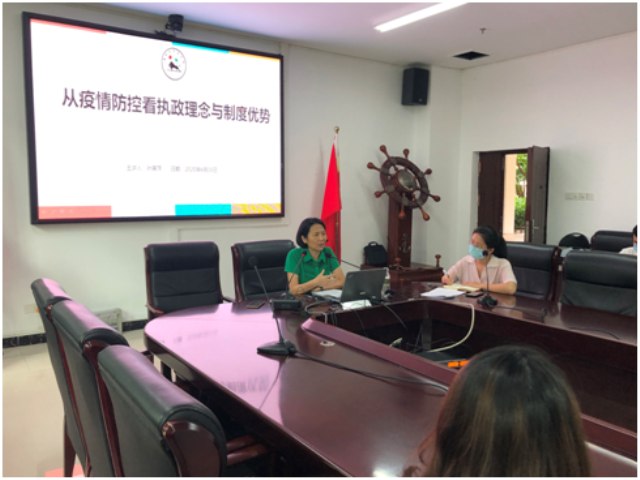 叶英萍书记以“从疫情防控看执政理念与制度优势”为主题,以中美疫情防控对比向学生们介绍了从1月底至今我国防疫工作取得的重大成效,中国共产党坚持党的群众路线,构建群防群治抵御疫情的人民防线,充分体现了我国此次防疫政策的及时性与准确性,同时更加体现了中国共产党领导、执政理念和社会主义制度的优越性。