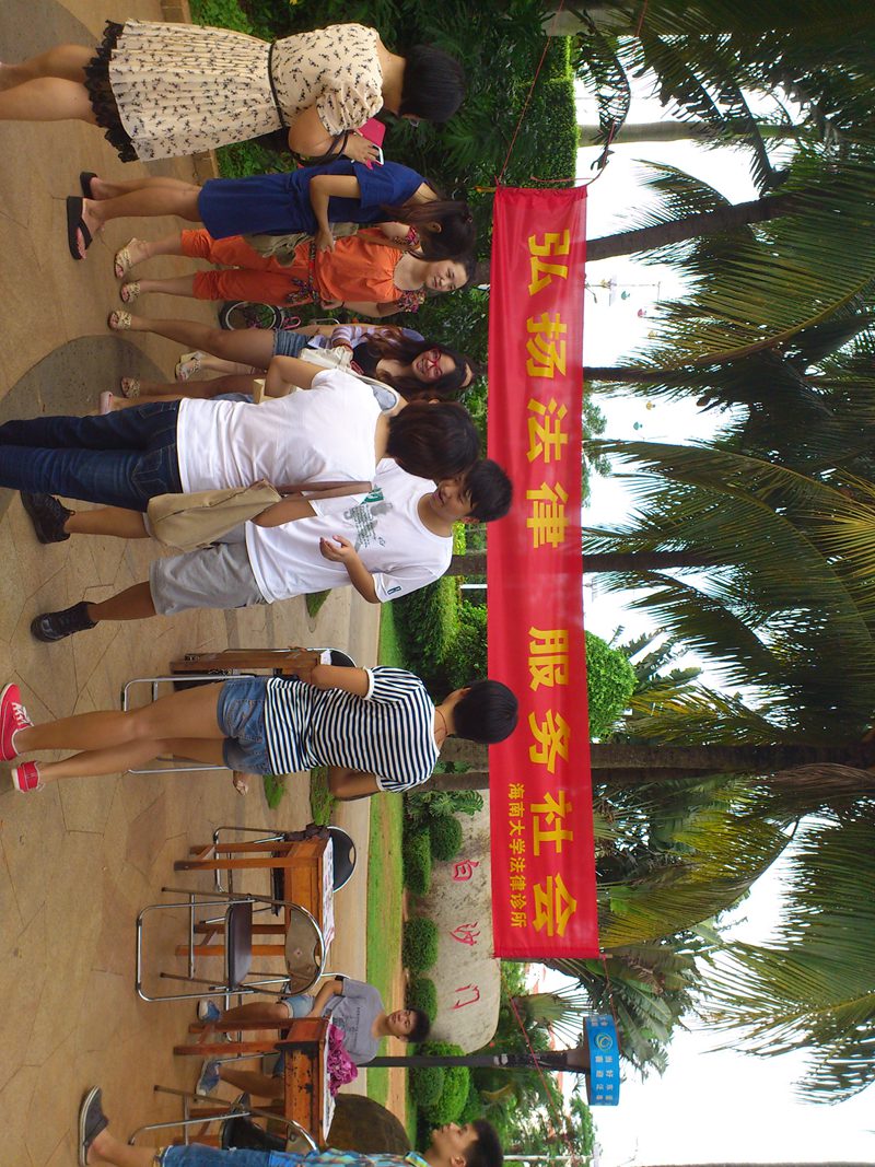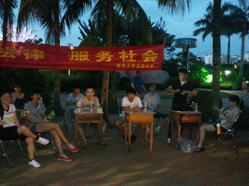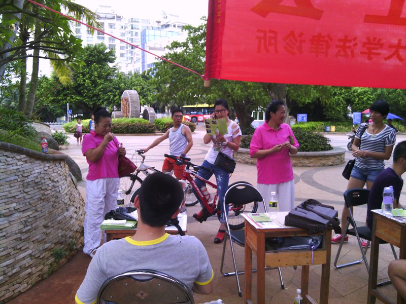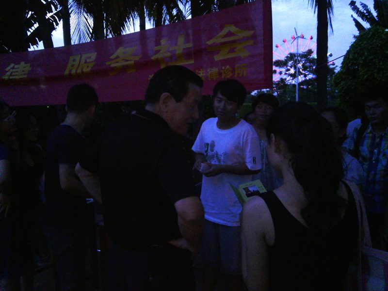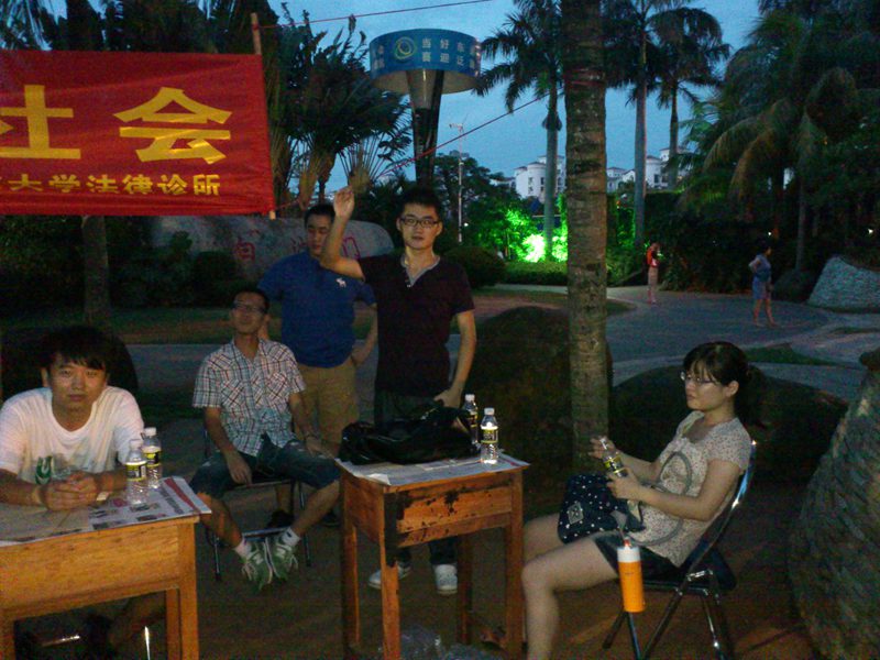 下午四时许,宣传活动正式开始。刚开始时,很多市民只是走走看看,我们诊所成员便主动上前给大家散发宣传资料及诊所名片,讲明我们的身份及其来意。到了傍晚下班高峰,现场便吸引来了不少路过的群众,对于前来咨询法律问题的群众,学员们都耐心的向对方讲解相关知识,并提出建议方案,在临走时还相互留下联系方式,以便进一步沟通。到了晚饭过后,随着出来散步、跳健身舞的群众越来越多,前来咨询的人数也大大增加,将活动现场氛围推向高峰。通过这次活动,学员们推广普及了法律知识,使群众感受到法律就在他们身边时刻保护着他们。在活动过程中同样也为学员创造了更多实践机会,学到在学校课堂上无法获得的社会知识,感受到了利用法律的知识为群众解决法律问题时的愉快,增长了实践能力,提高了学员们学习法律的热情。