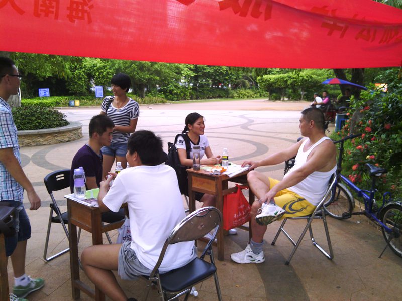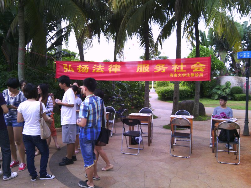 2013年5月24日下午,402cc永利集团402永利集团官网入口法律诊所第十七期学员来到了白沙门公园开展了一次以“弘扬法律,服务社会”为主题的法制宣传和法律咨询活动,此次活动在法律诊所叶英萍老师和伍奕老师的支持和各学员的积极参与下顺利开展,伍奕老师到了现场指导此次宣传活动。